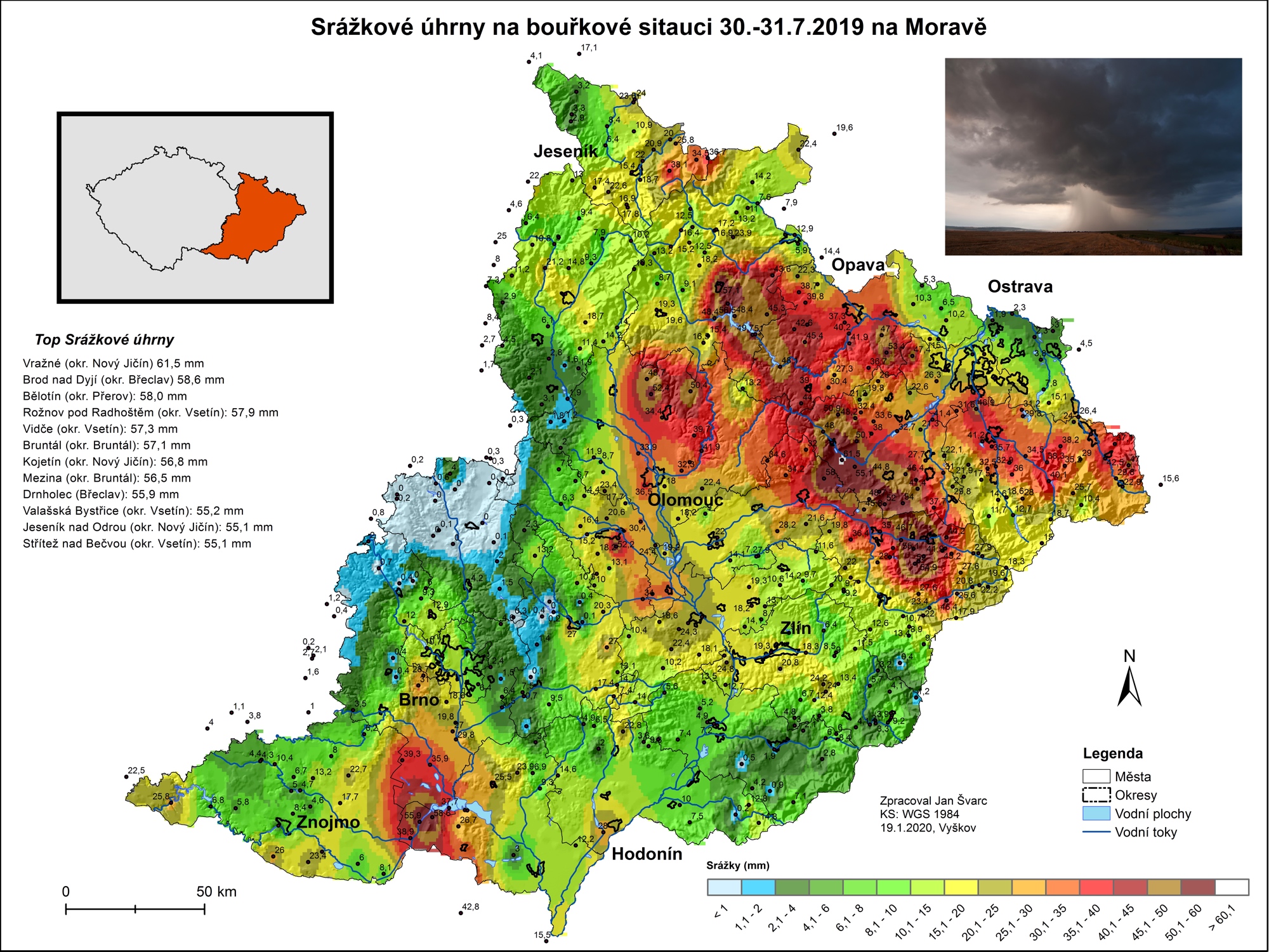 | Srážkové úhrny na bouřkové situaci 30. – 31. 7. 2019. (c) Jan Švarc © Jan Švarc Velikost: 1143.5 kB |
