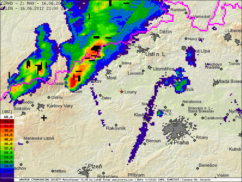 Letos poprvé se zdála být situace taková, že mělo docházet k rozvoji silných bouří a supercel i na severozápadě Čech. Aktuální stav počasí a výstupy ze sondážek dávaly tušit, že se tentokrát modely nespletly a jako nejvhodnější místo pro pozorování se zdály Krušné hory a České středohoří. S prvními odpoledními kumulonimby jsem vyrazil do této oblasti a již během cesty kumulonimby značně mohutněly a dostávaly na radaru vyšší odrazivost. Nezbývalo nic jiného než jet až na hřeben Krušných hor. Když jsem dorazil na Teplicko, tak už se situace značně zkomplikovala. Při pohledu na rýsující se shelf cloud s občasnými blesky jsem začal panikařit a ihned jsem začal hledat místo pro pozorování poblíž Teplic. To ale vedlo k tomu, že jsem dvakrát zabloudil a ztratil rozhodujících 15 minut, kdy už se nedalo dostat před bouři. Nakonec jsem zastavil u Krupky, kde jsem zdokumentoval alespoň bok postupující bouře, která podle radaru začala jevit supercelární znaky. Oblačnost vyloženě supercelární charakter v tuto chvíli neměla. Neodpovídalo tomu ani zrychlené video.
