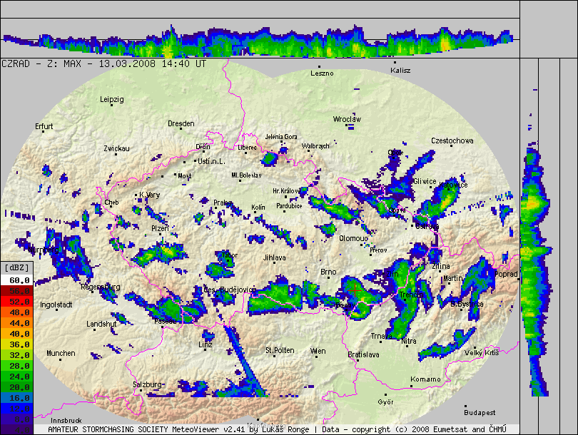 | Radarový snímek z 13. 3. 2008, 14:40 UTC ©2008 Český hydrometeorologický ústav Velikost: 284 kB |
